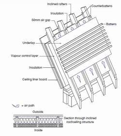 Roof structure - insulation at rafter with impermeable underlay